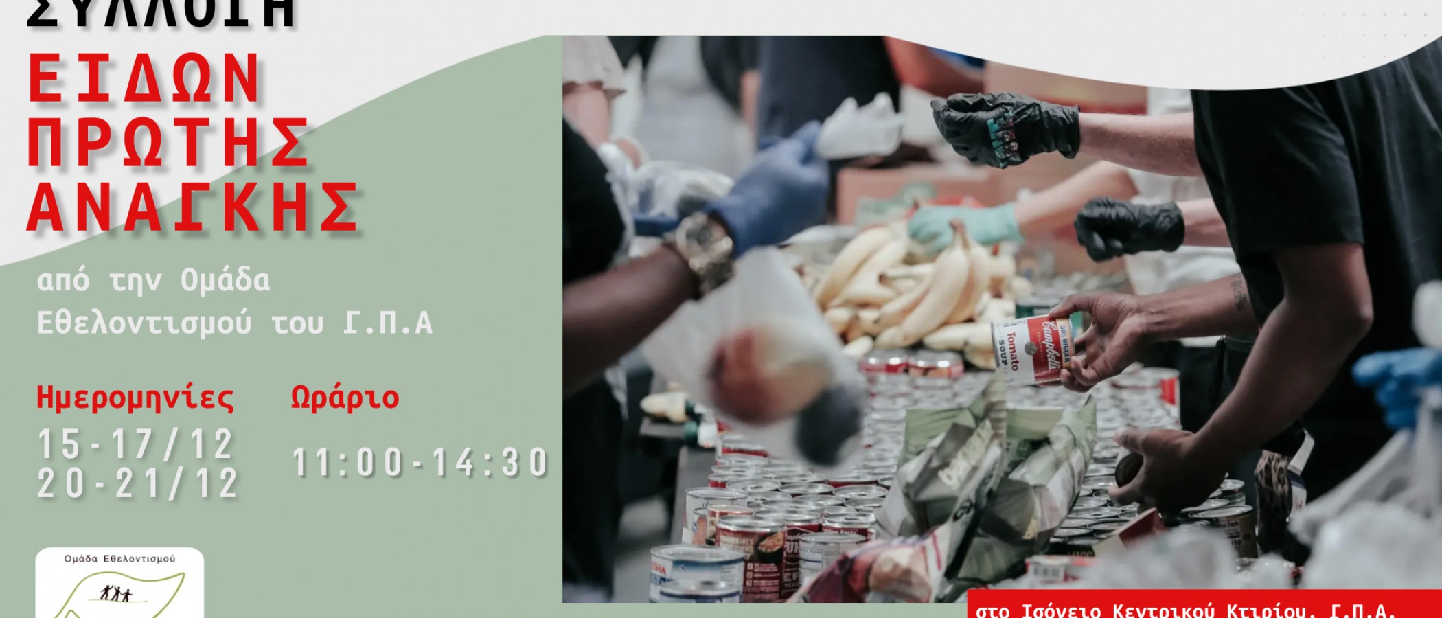 Συλλογή ειδών πρώτης ανάγκης από την Ομάδα Εθελοντισμού ΓΠΑ