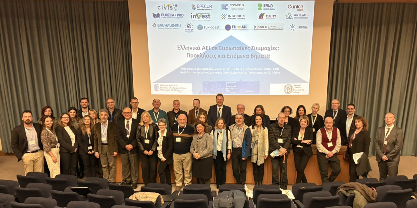 Το Γεωπονικό Πανεπιστήμιο Αθηνών (ΓΠΑ) συμμετείχε ενεργά στη 2η Ημερίδα με τίτλο «Ελληνικά ΑΕΙ σε Ευρωπαϊκές Συμμαχίες: Προκλήσεις και Επόμενα Βήματα», η οποία πραγματοποιήθηκε στην Αίθουσα της Συγκλήτου, στους ιστορικούς χώρους των Προπυλαίων του Εθνικού και Καποδιστριακού Πανεπιστημίου Αθηνών, στις 28 Νοεμβρίου 2025. Η εκδήλωση εστίασε στο ρόλο και τη συμβολή των ελληνικών πανεπιστημίων στις Ευρωπαϊκές Συμμαχίες, αναδεικνύοντας τη σημασία της διεθνοποίησης, της ακαδημαϊκής καινοτομίας και της ανάπτυξης κοινών εκπαιδευτικών πρωτοβουλιών.