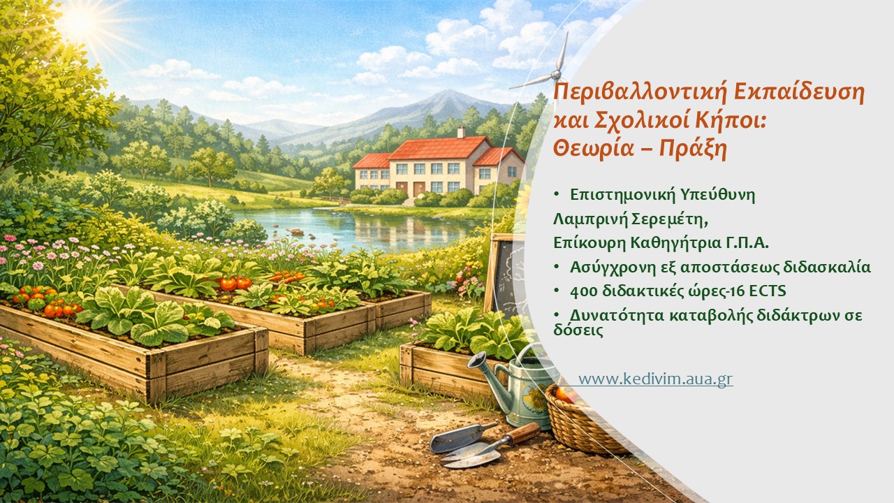 Το Κέντρο Επιμόρφωσης και Διά Βίου Μάθησης (ΚΕΔΙΒΙΜ) του Γεωπονικού Πανεπιστημίου Αθηνών (ΓΠΑ) σας καλωσορίζει στο εκπαιδευτικό πρόγραμμα  με τίτλο